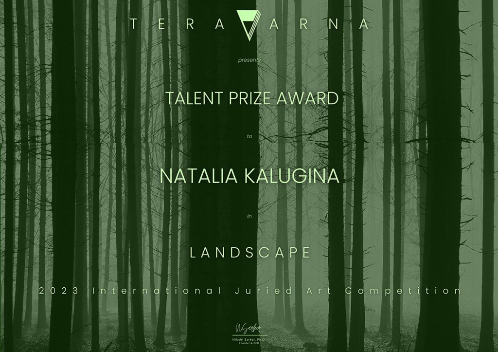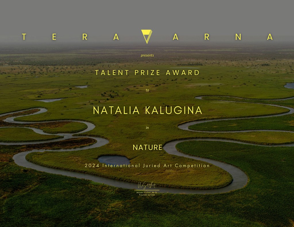 Juried artist,”2nd Nature” Art Show, Teravarna online Art Gallery, my painting “The snow paradise” won a Talent Prize Award